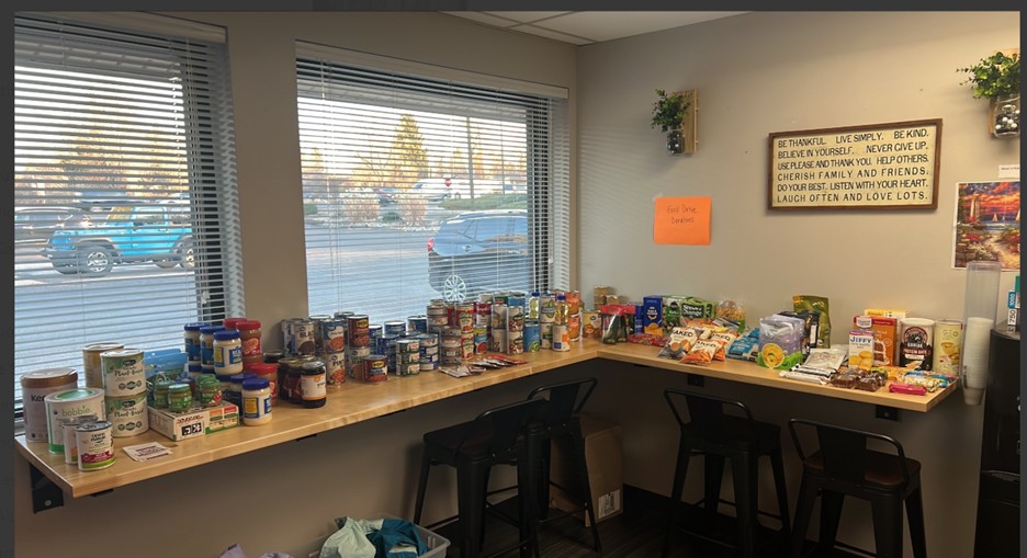 Within days, a food drive was organized across our offices to help ensure clients had access to essential resources during a time of heightened need. Employees were also invited to extend their impact beyond our walls by donating to Food Bank of the Rockies, strengthening support for families throughout the broader community.